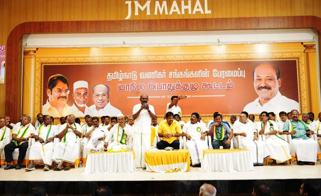 18-12-2025 இன்று தேனி மாவட்டம், வீரபாண்டியில் தமிழ்நாடு வணிகர் சங்கங்களின் பேரமைப்பின் 42-வது மாநிலப் பொதுக்குழு கூட்டம் மாநிலத் தலைவர் ஏ.எம்.விக்கிரமராஜா அவர்கள் தலைமையில் வெகுச்சிறப்பாக நடைபெற்றது. மாநிலப் பொதுச்செயலாளர் வெ.கோவிந்தராஜுலு துவக்கவுரையாற்றினார். மாநிலப்பொருளாளர் ஹாஜி.ஏ.எம்.சதக்கத்துல்லா ஆண்டறிக்கை வாசித்தார். மாநில தலைமைச் செயலாளர் பேராசிரியர் ஆர்.ராஜ்குமார் தீர்மானவுரையாற்றினார். தேனி மாவட்டத் தலைவர் பி.செல்வகுமார் வரவேற்புரை நிகழ்த்தினார். தமிழ்நாடு வணிகர் சங்கங்களின் பேரமைப்பு மண்டலத்தலைவர்கள் முன்னிலை வகிக்க, தேனி மாவட்ட சிறப்பாளர்கள் குத்துவிளக்கேற்றிட பொதுக்குழு இனிதே நடைபெற்றது.