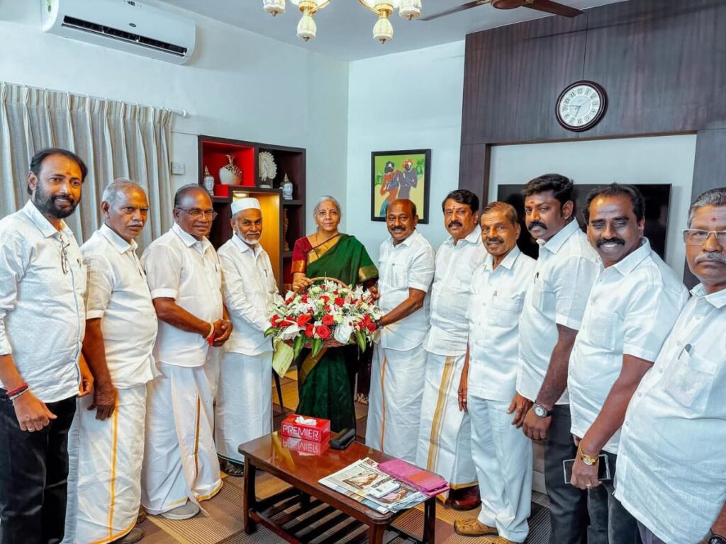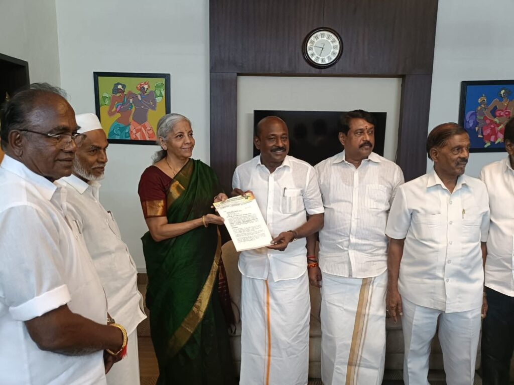 பேரமைப்பின் நீண்டகால கோரிக்கைகள் ஏற்றுக்கொண்டுள்ள நிலையில் மீதமுள்ள கோரிக்கைகளை நிறைவேற்றித்தர வேண்டுமென மாண்புமிகு மத்திய நிதி அமைச்சர் திருமதி.நிர்மலா சீதாராமன் அவர்களை தமிழ்நாடு வணிகர் சங்கங்களின் பேரமைப்பு மாநிலத்தலைவர் ஏ.எம்.விக்கிரமராஜா அவர்கள் தலைமையில் பேரமைப்பு நிர்வாகிகள் 13-9-2025 அன்று சென்னையில் சந்தித்து ஜி.எஸ்.டி சம்பந்தமான பல்வேறு பிரச்சனைகள் குறித்த கோரிக்கை மனு அளித்தார்.